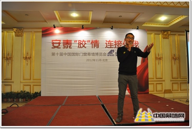 鄒總致辭:“公司24年來,安泰始終專注于結構膠、密封膠的研發、生產和銷售,致力于為“安全建筑”提供系統解決方案,并成為中國建筑膠領導性品牌,全球集裝箱密封膠領導品牌。先后獲得“國家級重點高新技術企業”,2011年度廣州市民營企業“納稅百強企業”,廣東省著名商標,連續7年獲得中國幕墻網“市場表現獎”。安泰憑借穩定的產品質量,強有力的技術支撐,健全的“全國直銷、一站式”直銷網絡體系、專業的營銷及服務團隊市場依然保持了快速增長,尤其是幕墻膠增長更是喜人,而且國外市場也得到更多的認可。安泰將始終堅持品牌戰略,“實實在在的好膠、安安心心的選擇”,以矢志不渝專業精神確立并保持在行業中的領航地位。”