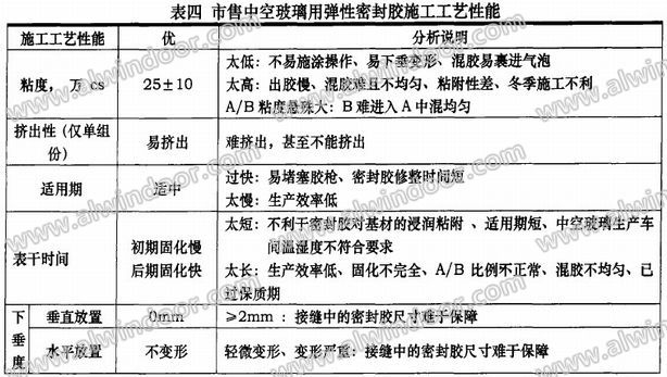 從表二的判定規則可以看出, 該標準對中空玻璃用外道密封膠的外觀質量要求也是非常的嚴格的。表三從色澤、細度、氣味、氣泡、粗粒、結塊、結皮、聚集態和有無析出物對市售中空玻璃用硅酮密封膠進行外觀質量優劣判定, 并進行分析說明。