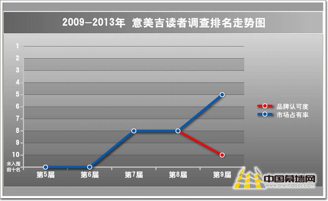 圖8:2009-2013年意美吉鋁型材設備(蘇州)有限公司讀者調查排名走勢圖