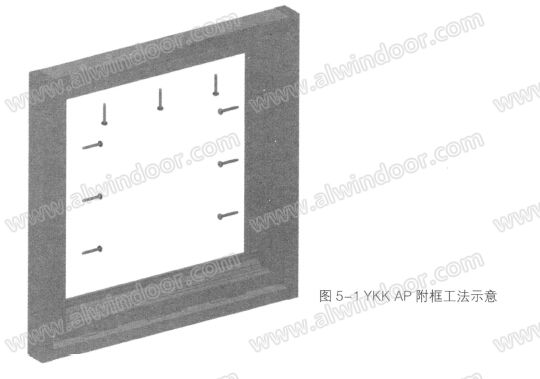 YKK AP根據自己長期在施工方面的總結,推出了自己了附框工法。總體原則是,左、右、上三邊使用水密螺絲安裝,下框使用連接件安裝。主要考慮到下框有長期積水的可能,不適宜作開孔加工。