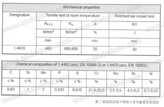 本工程地處阿布扎比,沿海氣候明顯?諝鉂穸却,鹽堿度高。支承件的防腐相當(dāng)重要!組建最外端距結(jié)構(gòu)面達(dá)4m,最大傘面積12平米?紤]到上述因素,支承系統(tǒng)選用的是最高耐腐性及高強(qiáng)度的雙相不銹鋼材料(圖7)(板料棒料號牌為1.4462;鑄件牌號為1.4470)。
