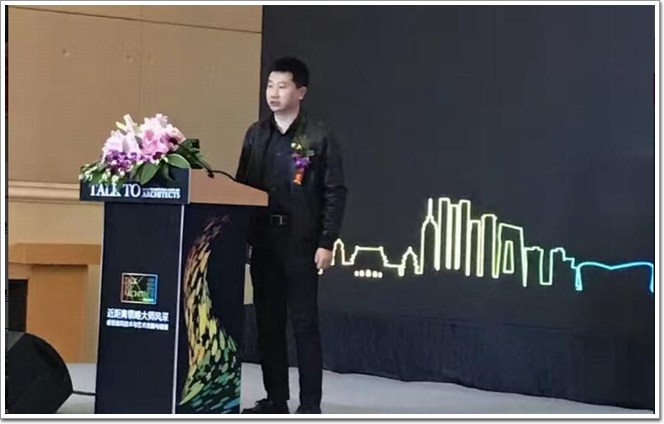 馬樹清分別在《對話建筑師論壇TALKTO非線性建筑表皮的設計及營造》論壇上演講了《建筑“面紗”的工程設計藝術》和《螺旋與仿生一一琉璃世界大塔設計與營造》。