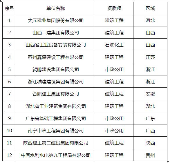 其中:中鐵十五局集團有限公司(鐵路工程、公路工程、市政公用)、中國一冶集團有限公司(冶金工程、建筑工程、市政公用)新晉升為三特級行列,目前全國三特級企業,根據統計,共有十家,且全部為央企。