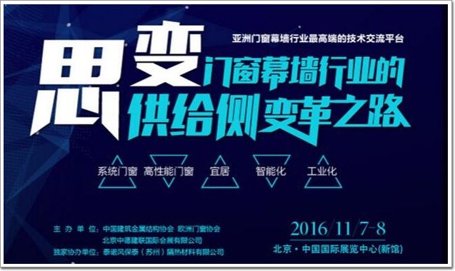 泰諾風保泰特約——2016“中國國際門窗幕墻高級研討會”于2016年11月7日“思變”開幕,本屆研討會為期2天,以“門窗(詞條“窗”由行業大百科提供)幕墻行業的供給側變革之路”為主題,共計邀請20位嘉賓進行精彩演講,分別在“系統門窗解讀專場”、“ 高性能門窗與宜居空間專場”、“ 幕墻案例解析專場”和“建筑幕墻參數化與智能化專場”四個專場開展探討,會場坐無虛席,來自中國和歐洲、日本、澳洲等三百多位專家、高層技術人員參加了本次高水平的國際研討會。