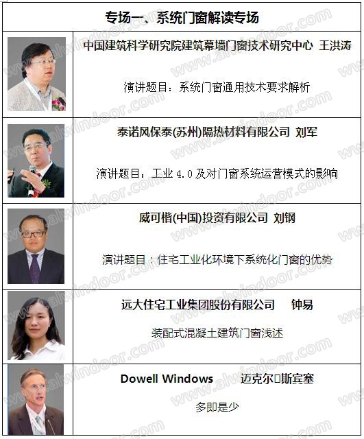 “系統”的概念自上世紀90年代進入中國已近20年,2012年開始“系統”在門窗幕墻行業風靡開來,至今幾近于無門窗不“系統”。然而,何為“系統”?什么樣的門窗符合“系統門窗”的標準?“系統門窗”和“門窗系統”有什么不同?什么是符合中國市場環境的系統發展模式?“系統門窗的通用技術要求”經過多年的研究工作,已經進入申請國家標準的階段。本專場將讓所有的聽眾在新的標準實施前搶占先機,得到系統門窗的全面解讀。在這個專場中,中國建筑科學研究院建筑幕墻門窗技術研究中心王洪濤主任將對系統門窗應具備的要素及技術要求進行分析;泰諾風保泰(蘇州)隔熱材料有限公司的劉軍先生講解工業4.0對門窗系統運營的影響;威可楷(中國)投資有限公司的劉鋼先生講述系統門窗在建筑工業化發展中的優勢;澳大利亞專家介紹澳洲系統門窗的體系及如何在施工中保證門窗的性能等。