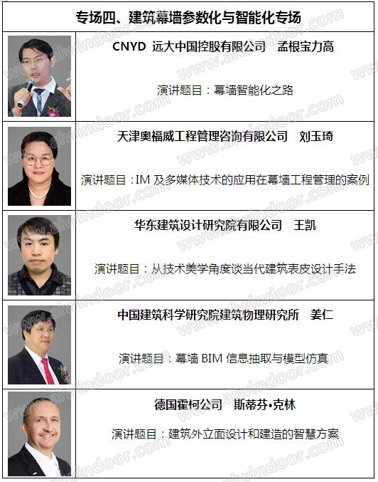 作為建筑的外衣,對于建筑節能的需求促進了幕墻產品升級和技術創新速度,BIM系統的使用給門窗幕墻行業帶來了全新的變更。同時隨著人口紅利逐漸失效,工業化生產方式取代勞動密集型的手工方式,建筑的工業化是行業發展道路上不可回避的話題,當開始“像造汽車一樣造房子”,門窗、幕墻需要如何適應?本專場將邀請CNYD 遠大中國控股有限公司的孟根寶力高先生分享幕墻智能化之路;遠大住工集團專家講解裝配式建筑對門窗設計及安裝的要求;天津奧福威工程管理咨詢有限公司劉玉琦女士帶來國外最新的智能、綠建與幕墻結合的案例分享;中國建筑科學研究院建筑物理研究所的姜仁先生通過案例解析幕墻施工中傳統軟件與BIM結合的可行性研究及痛點分析。