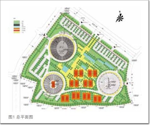 天津團泊湖國際網(wǎng)球中心坐落于天津市靜海縣團泊新城西區(qū),是現(xiàn)代化的專用網(wǎng)球比賽場地,同時也是2013年東亞運動會的主場館之一(圖1,2)。項目包括一座可開啟屋蓋的10 000人決賽場、一座4 000座覆蓋罩篷的半決賽場、一座多功能體育會所以及一些室外比賽及練習(xí)場地。