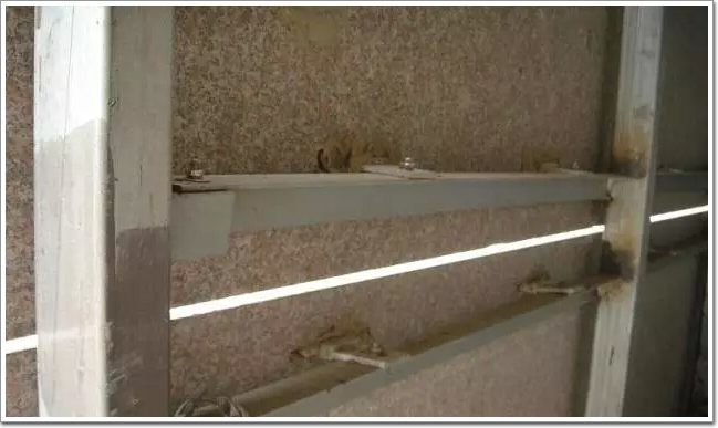 所謂的開放式石材,內(nèi)的鍍鋅鋼龍骨都生銹了,且窗洞口漏水,其中主要原因是甲方請的管理公司造成的,管理公司(管理公司的名字就不說了,呵呵)的人不懂裝懂,瞎指揮,后來沒有辦法了,整個(gè)工程石材外又重新打了膠!