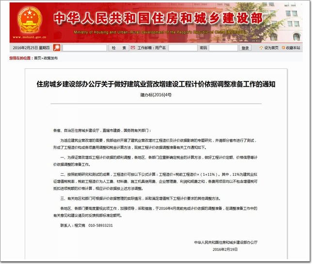 住建部:稅率11%,建筑業營改增最新文件發布