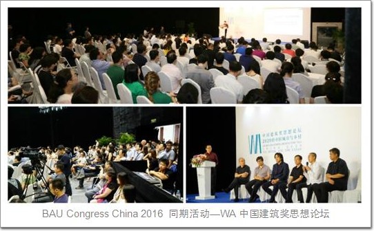繼2015年10月BAU Congress China與世界建筑雜志社(WA)成功攜手后,雙方決定加強密切合作實現優勢互補,繼續推動雙方合作升級。此次舉辦的“WA中國建筑日”活動,涵蓋論壇、展覽、行業沙龍、酒會等眾多形式,喜獲巨大成功。以“2020的中國城市與鄉村”為主題的WA中國建筑獎思想論壇人氣爆棚,嘉賓以超高的規格贏得了業界的關注。劉伯英,朱競翔,何崴,邵韋平,李興鋼,李虎,黃文菁,張利,朱小地,吳鋼,華黎,周榕,黃居正等中國建筑界權威人士悉數到場。 BAU Congress China 2016 同期活動—WA中國建筑獎思想論壇