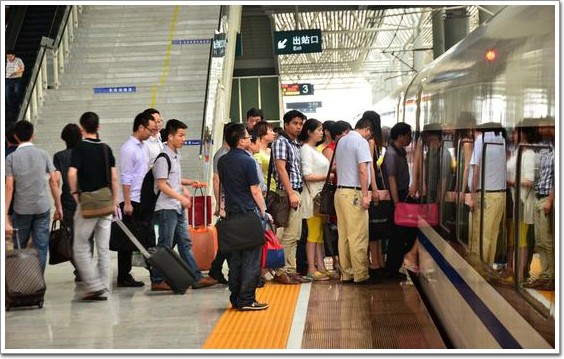2014年6月5日,乘客在武廣高鐵湖南衡陽西站等候上車。/視覺中國