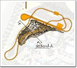 蜀道難(木質過山車),通過塑石與木板構筑的走道,帶游客穿越蜀道的陡峭山壁。