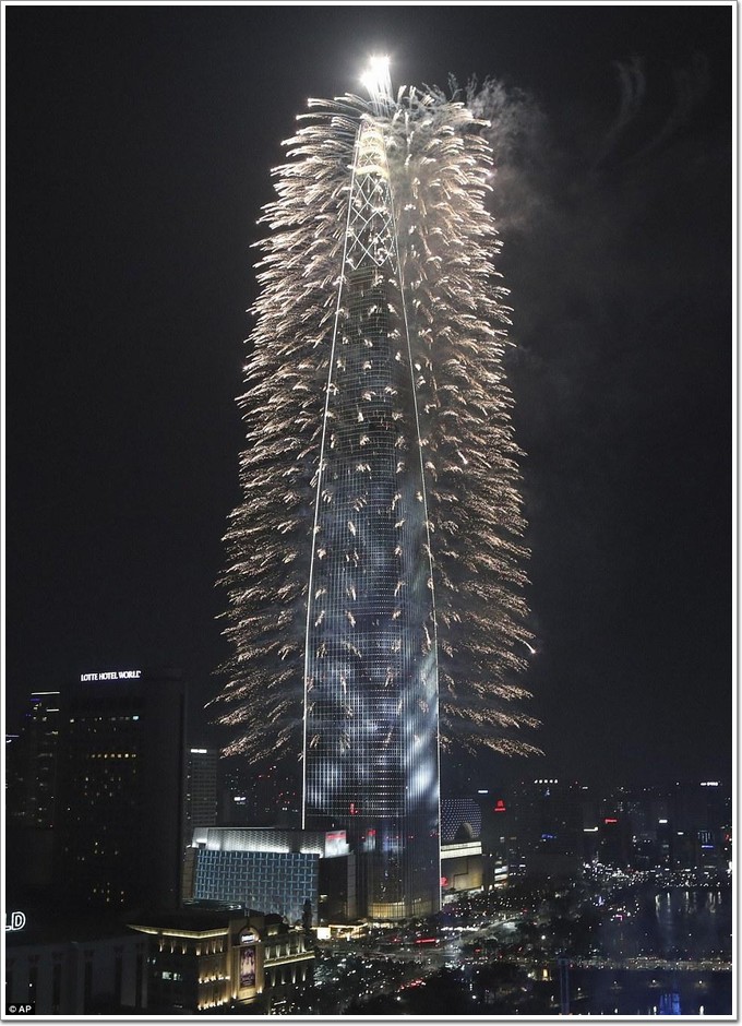 該項目于2010年11月動工建設,歷時6年多,終于于2017年4月3日建成正式營業,為了慶祝這激動人心的一刻,自2日晚9時起,樂天世界大廈燃放了11分鐘慶祝煙花,煙花價值約為40億韓元,約吸引了40萬人觀看,可見韓國人民和各國游客對這幢大樓的期待。