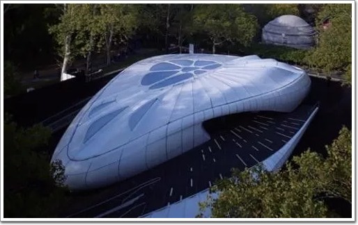當今世界許多主流建筑事務所(如SOM、KPF、Aedas)都設有建筑數字技術研究團隊,扎哈·哈迪德(Zaha Hadid) 事務所的數字化研究團隊CODE在公司內具有十分重要的作用。在計算機技術和結構工程師的配合下,塑料幫助這些團隊實現了各種三維造型和曲面圖案。扎哈·哈迪德為香奈兒設計的移動藝術館(Mobile Art Pavilion for Chanel)(圖8,9),采用流動的幾何形體和有機的線條組成了一個流動且充滿張力的空間。主體為鋼結構(詞條“鋼結構”由行業大百科提供),外墻和屋頂使用三種不同的塑料材質,創造出扭曲、 起伏的造型。