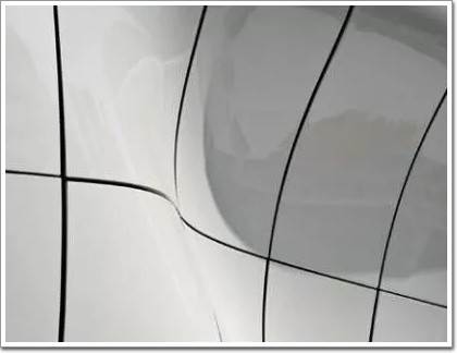 移動藝術館屋頂主要采用聚氯乙烯(PVC)復合膜材,采光天窗使用ETFE透明結構膜材。PVC膜是三大復合膜材之一,白色不透明,用于屋頂遮擋陽光。與PVC復合膜不同,ETFE是不含織物的單一聚酯薄膜透光率(詞條“透光率”由行業大百科提供)可達95%,用于屋頂充氣枕結構,采光良好。組成移動藝術館表皮的塑料材質依據網格劃分,通過計算機計算出最優結果,經高精度加工制造而成。建筑的實現有賴于數字技術的精確控制,也依賴于塑料材質的超強可塑性。正是這些條件使一座造型優美的曲線作品被呈現出來。