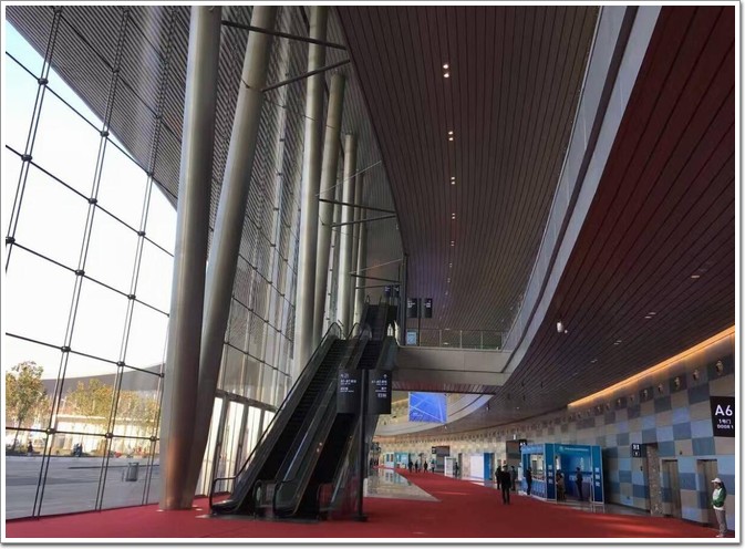 2014年12月5日,江河與綠地會展項目牽手合作,負責項目的金屬屋面工程和幕墻工程,施工面積高達近30萬平方米,其中金屬屋面25.9萬平方米、幕墻3.38萬平方米。作為綠地國際博覽城項目率先啟動建設的建筑,它外形異常復雜,工程體量也比較大,外形美觀大方,是南昌市九龍湖新區綠地國際博覽城標志性建筑。