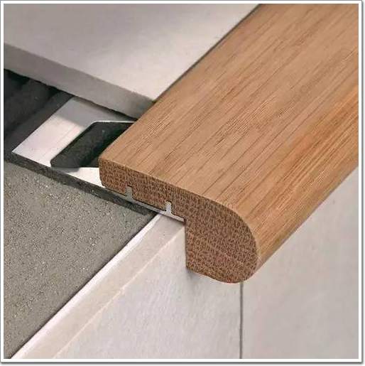 磚在陰角陽角收口時,通常采取45°角對拼的方式。這樣不僅容易崩邊、開裂,還存在一定的安全隱患。而圓潤的金屬收邊條不僅增強了裝飾效果,也一并消除了這些問題。