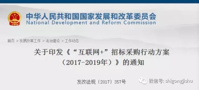 2017年2月,國家發展改革委、工業和信息化部、住房城鄉建設部、交通運輸部、水利部、商務部等六部委聯合印發《“互聯網+”招標采購行動方案(2017-2019年)》,要求: