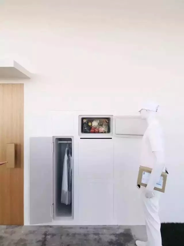 已為物流的未來做好準(zhǔn)備的YAMATO HOLDINGS和擅長用人性化的設(shè)計(jì)的產(chǎn)品設(shè)計(jì)師柴田文江聯(lián)手打造“冰箱在室外的家”,而門外其實(shí)不只是有冰箱,還有可以將衣服掛起存放的衣柜,可以存放藥品的藥箱。以后可以叫快遞送一箱冰淇淋到家里,存在門口冰箱。下班回家就可以享用了。