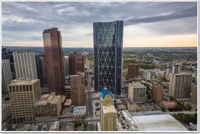 對于北美國家來說,他們并不像中國一樣熱衷于建造動輒就四五百米的摩天大廈,超過200米在北美的許多城市就是很高很高且極容易就穩(wěn)坐第一高度的建筑。而對加拿大第四大城市——卡爾加里來說最耀眼的建筑莫過于那座彎曲大廈了,因為它的彎曲程度又被稱作“弓塔”。