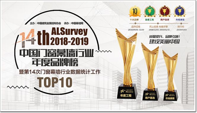質量提升,品牌引領,共建美麗中國!本屆活動于2018年8月由鋁(詞條“鋁”由行業大百科提供)門窗幕墻委員會授權中國幕墻網ALwindoor.com發起,并以全國門窗幕墻行業“第14次門窗幕墻行業數據申報工作”的形式,進行品牌的入圍征集。在入圍品牌名單公示完成后,將于2018年12月正式啟動網上投票和專家評審,直到2019年2月1日結束。而排行榜單的公布及頒獎典禮,將在2019年3月3日的廣州年會上舉行。