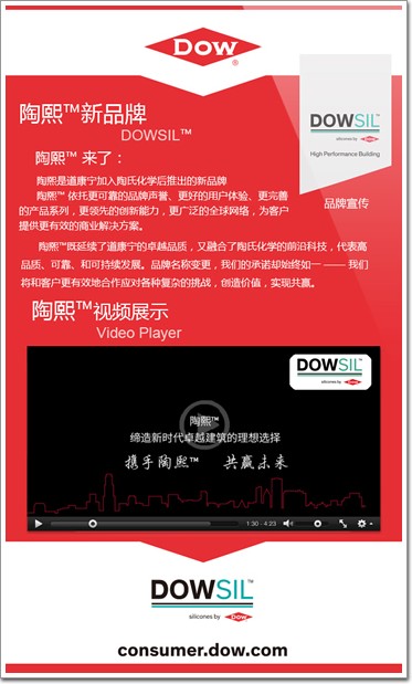 讓我們首選進入“品牌篇”,我們可以在這里了解“陶熙”品牌的由來,底部還配有品牌宣傳視頻。“陶熙”是道康寧加入陶氏化學后推出的新品牌,既延續了道康寧的卓越品質,又融合了陶氏化學的前沿科技,代表高品質、可靠、和可持續發展。