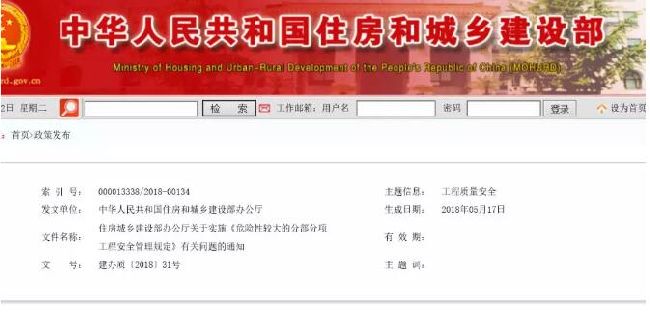 2018年5月22日住建部再次下發文件,對危大工程的范圍和專項施工方案的內容予以明確。