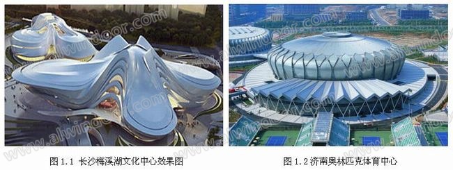 當(dāng)今的建筑造型已經(jīng)呈現(xiàn)多元化的發(fā)展方向,一些新派建筑師不滿足于設(shè)計中規(guī)中矩的建筑形式,許多大型和超大型的極富視覺沖擊力的建筑越來越多的呈現(xiàn)在我們面前。 建筑的屋頂、屋面部分也都利用外飾層作為建筑設(shè)計思想的載體,展示著建筑藝術(shù)的魅力。異形金屬屋面系統(tǒng)以往也只是作為建筑造型中的個別單體,現(xiàn)在已經(jīng)大范圍的得到應(yīng)用。超大型的曲面建筑金屬屋面,特別是雙曲面造型的建筑金屬屋面系統(tǒng),越來越多的應(yīng)用在國內(nèi)外大型建筑中。(圖1.1~1.4)