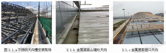 1) 排水天溝采用防腐性能好的金屬材料,不銹鋼板的厚度不應(yīng)小于2.5mm;
