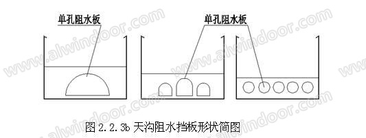 阻水板的形式可以為篩孔式、橋式、板式等。阻水板的高度一般可在天溝側(cè)立板高度的1/2至1/3(如圖2.2.3b)。