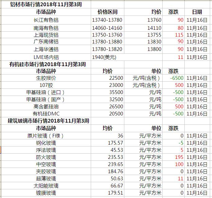 此原材料價格由中國幕墻網收集整理,僅供參考!