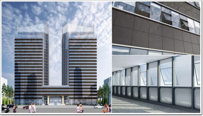 該項目在滿足現(xiàn)行國家、行業(yè)及地方相關(guān)規(guī)范要求的基礎(chǔ)上,運用建筑設(shè)計手法,實現(xiàn)太陽能幕墻與普通幕墻的完美結(jié)合,形成良好的外立面效果。