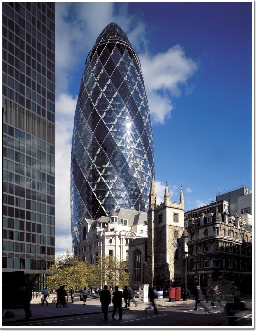 真實(shí)的倫敦是什么樣的?鱗次櫛比的高樓大廈?霓虹閃爍的城市夜景?有英國(guó)的朋友告訴我,其實(shí)并不是這樣,真實(shí)的倫敦并沒(méi)有爭(zhēng)奇斗艷的高樓大廈和滿是霓虹的街景,英國(guó)人以幾近偏執(zhí)的心態(tài)來(lái)保護(hù)歷史建筑,當(dāng)今的倫敦,只有金融區(qū)(the City)和金絲雀碼頭(Canary Wharf)才有二十一世紀(jì)大城市高樓林立的風(fēng)采,這其中最具代表性的建筑就是那座著名的“小黃瓜”(the Gherkin)。