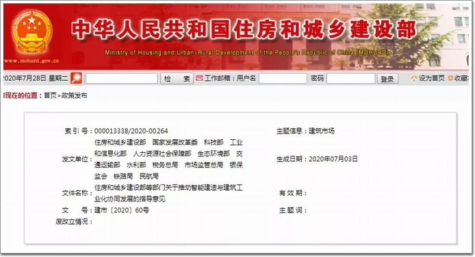 為推進建筑工業化、數字化、智能化升級,加快建造方式轉變,推動建筑業高質量發展,制定本指導意見。
