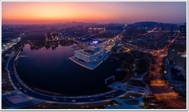 “堤岸高筑”——濃郁中國風而又兼具創新的現代時尚立面造型,是對良渚文明的致敬、傳承和發展。