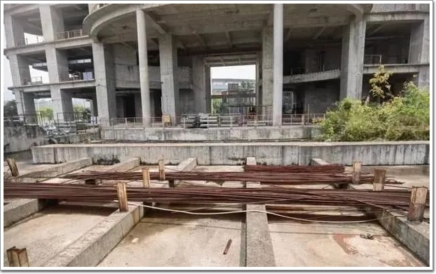 該地塊土地使用權出讓價已繳清,現狀:已封頂,玻璃幕墻也已經安裝完成了80%以上,只剩下裙樓和部分塔樓未完工,而項目已停工長達5年之久!