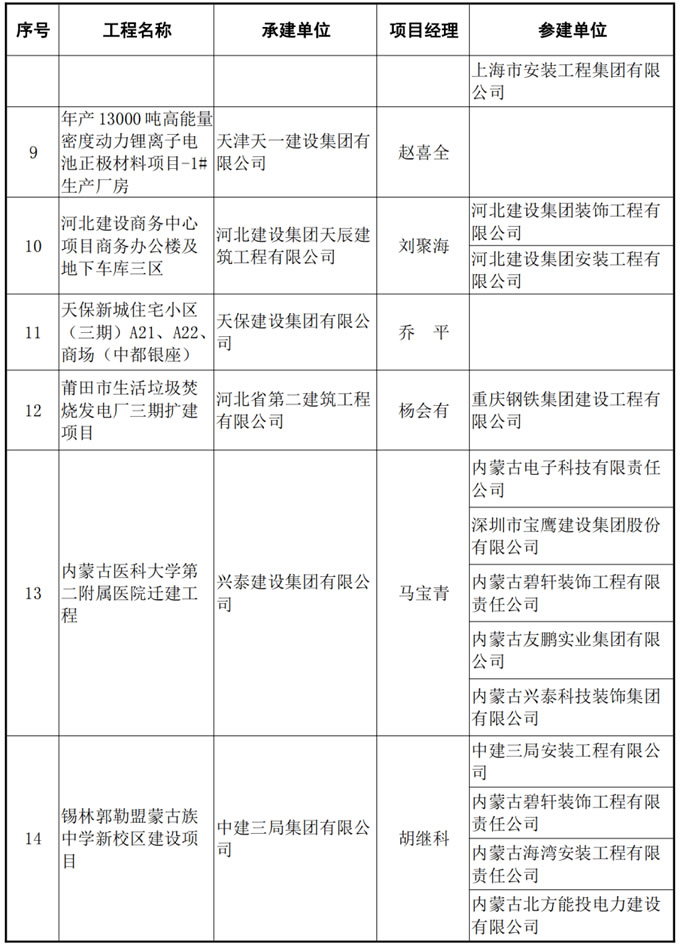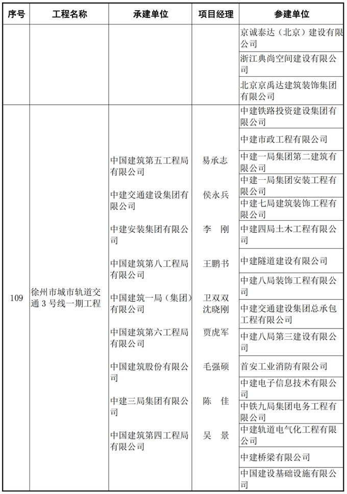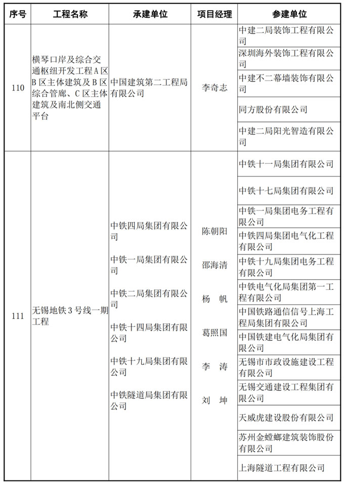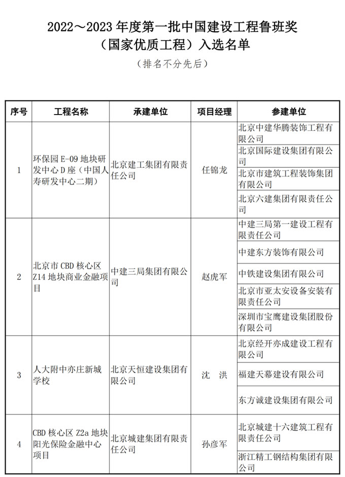 2022~2023 年度第一批中國建設工程魯班獎(國家優質工程)入選名單