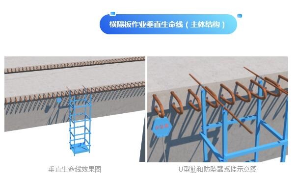 將濕接縫原有U型鋼筋作為防墜器懸掛點(diǎn),利用防墜器吊繩組成垂直生命線。