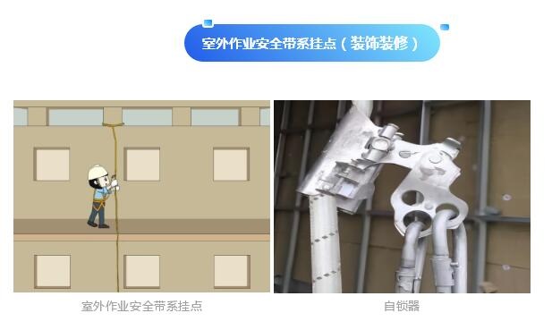 在鋼結(jié)構(gòu)(詞條“鋼結(jié)構(gòu)”由行業(yè)大百科提供)立柱上部焊接鋼筋拉環(huán)或利用鋼結(jié)構(gòu)立柱吊點(diǎn)作為防墜器懸掛點(diǎn),利用防墜器吊繩組成豎向生命線。