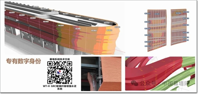在項(xiàng)目的外立面系統(tǒng)中,大量采用超大異型雙曲面造型UHPC與GRC板,整體面積約1.7萬方。相對(duì)于傳統(tǒng)的平板和單曲板,這類材料的“雙曲板”具有加工難度大、加工成本高、施工安裝難度大等特點(diǎn)。
