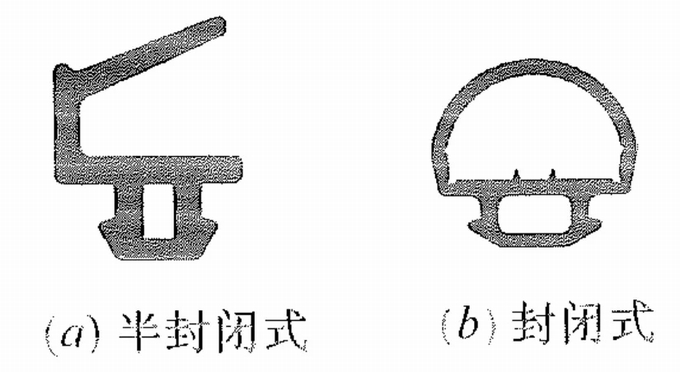 框扇間密封膠條截面形狀應根據需要選擇半封閉式或封閉式,當所需設計選用工作范圍較大或密封性能要求較高時,宜選用半封閉構造。