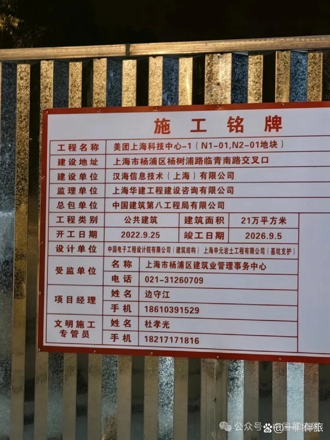 項目于2022年9月開工建設,目前D塔樓核心筒已封頂,根據最新發布的上海市2025年重大工程清單,美團科技中心將于年內建成。
