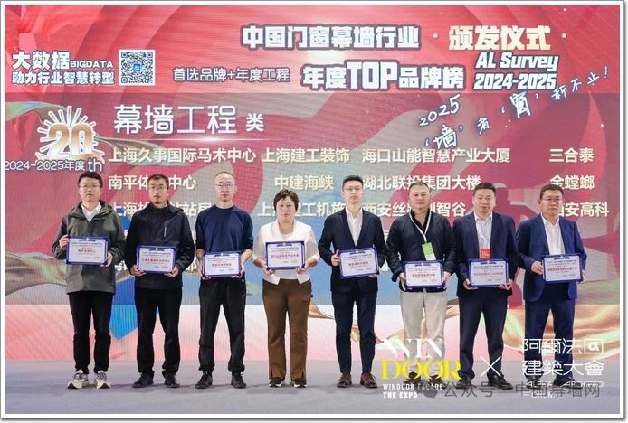 同期,“全國房地產與門窗幕墻產業發展大會”上,由中國幕墻網ALwindoor.com主辦的第20屆AL-Survey(2024-2025)年度大型讀者調查活動暨“年度喜愛幕墻工程”評選活動(簡稱:AL-Survey工程獎)頒獎儀式,在廣州保利世貿館隆重舉行。
